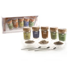 Artisan Salt Co., this limited edition smoked salt sampler set is the perfect gift for the chef in your life. each set includes 5 different smoked sea salts in our mini glass jars with hand-milled cork tops, 3 stainless salt spoons, and 3 salt serving bowls.