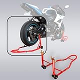 Here are some of the great features of Motorcycle Universal Red Rear Stand Kit Swingarm Bike Honda Suzuki Yamaha Kawasaki- Lifts 2 to 4 inches | Easy one-person operation | Separate Stands: Front and Rear