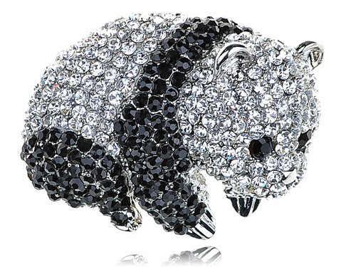 Alilang , Designed on silver alloy metal, this adorable baby panda brooch pin is decorated with clear and black rhinestone crystals.
