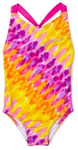 Speedo Girls 2-6x, - Bright color explosion print- Sporty back for stay put coverage- "No wedgie" gripper for stay put coverage- 80% Nylon/20% Spandex