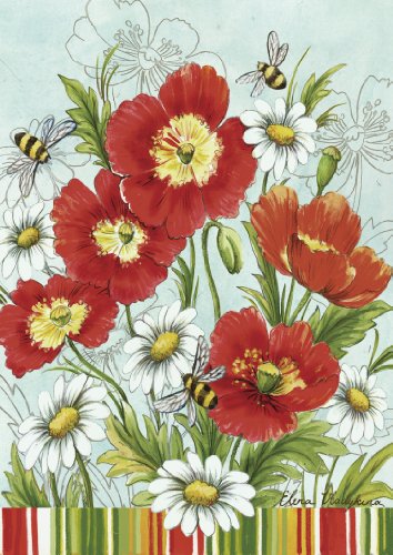 Toland Home Garden 102062, This Poppies and Daisies House Flag will make a statement hanging from your front porch or in your garden this season. Featuring a beautiful painting by Elena Vladykina of red Poppies and brilliant white Daisies, complete with honey bees buzzing around to really set the mood for Spring. From the authority in House and Garden Flags, Toland Home Garden only offers flags of the finest quality. There is something for everyone in Toland's sought-after line of original decorative art flags. Discover the wide range of seasonal, patriotic, holiday and renowned everyday flag designs. Find the right size flag for your home, almost all of the Toland Flag designs come in either a large house size or a smaller garden size. Also, don't forget your flag accessories like flag poles and flag arbors to display these beautiful decorative flags.
