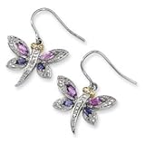 Genuine IceCarats Designer Jewelry Gift Sterling Silver & 14K Amethyst And Iolite And Diamond Dragonfly Earrings Details & Features